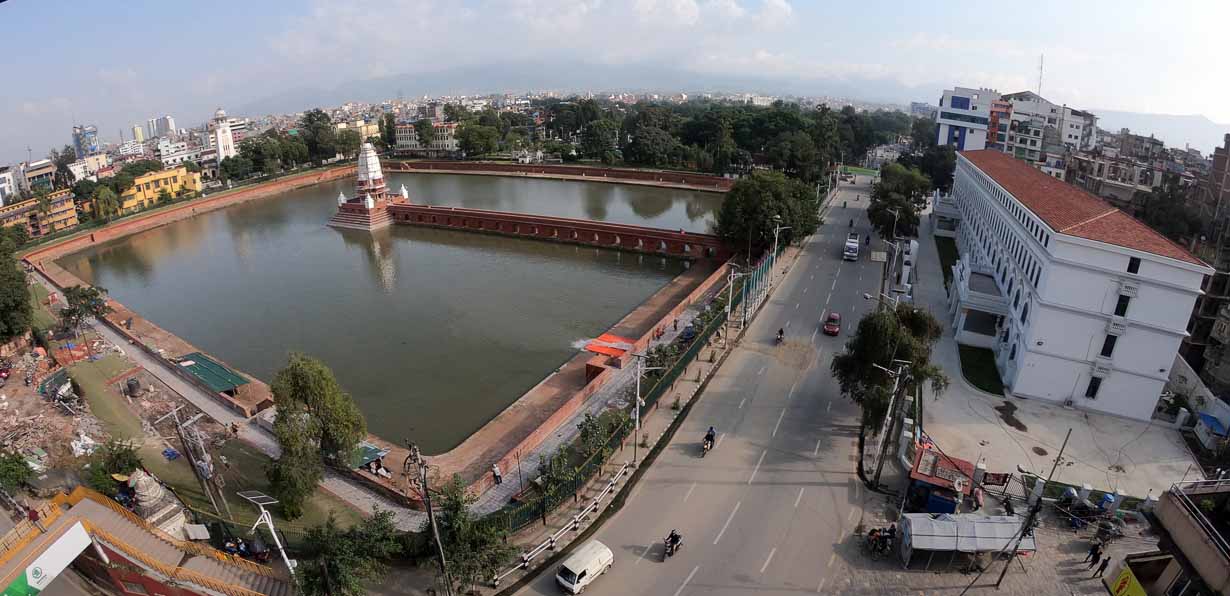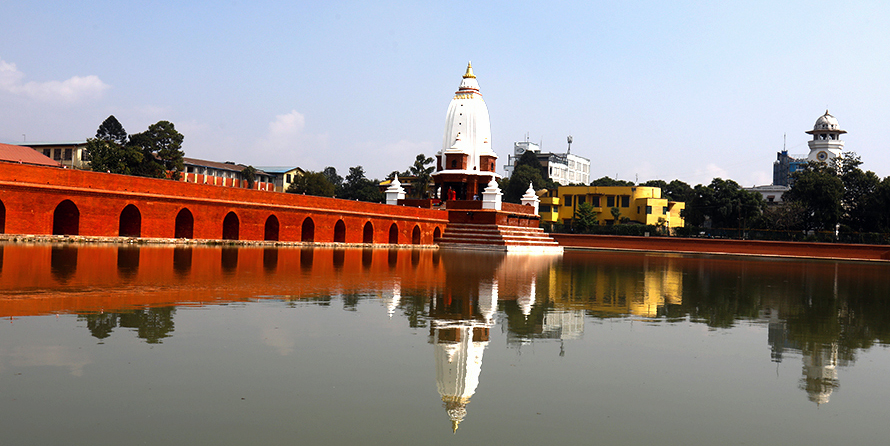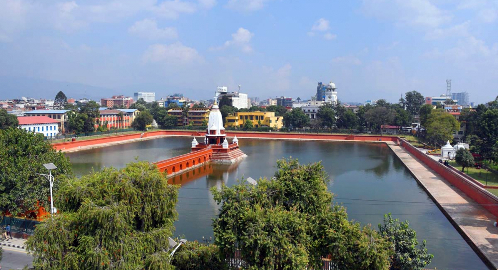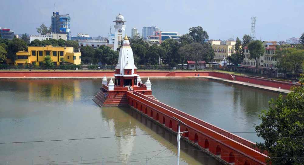 रानीपोखरीको पूर्वमा श्री ३ वीरशमशेर राणाले बनाएको घन्टाघर र श्री ३ चन्द्रशमशेरले बनाएको त्रिचन्द्र कलेज, पश्चिममा ऐतिहासिक दरबार हाईस्कूल, उत्तरमा विश्वज्योति चलचित्र भवन र दक्षिणमा रत्नपार्क पर्दछन् । यसको बीचमा रहेको मन्दिर वर्षमा एकदिन भाइटीकाका दिन मात्र सर्वसाधारणका लागि खुला हुन्छ । रानीपोखरीको बीचमा रहेको यो मन्दिर भाइटीकामा दिदी–बहिनी र दाजुभाइ नहुनेहरूले गएर टीका लगाउने स्थानका रूपमा विकास भएको छ ।